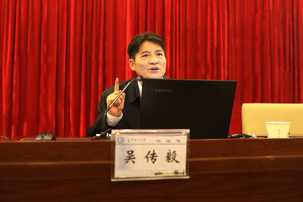 10月25日下午,学校在图书馆报告厅举办“不忘初心、牢记使命”主题教育形势与政策专题报告会,湖南省委党校副校长吴传毅受邀作题为《牢牢把握意识形态工作领导权》的专题辅导报告。校党委副书记、校长曹一家主持报告会。