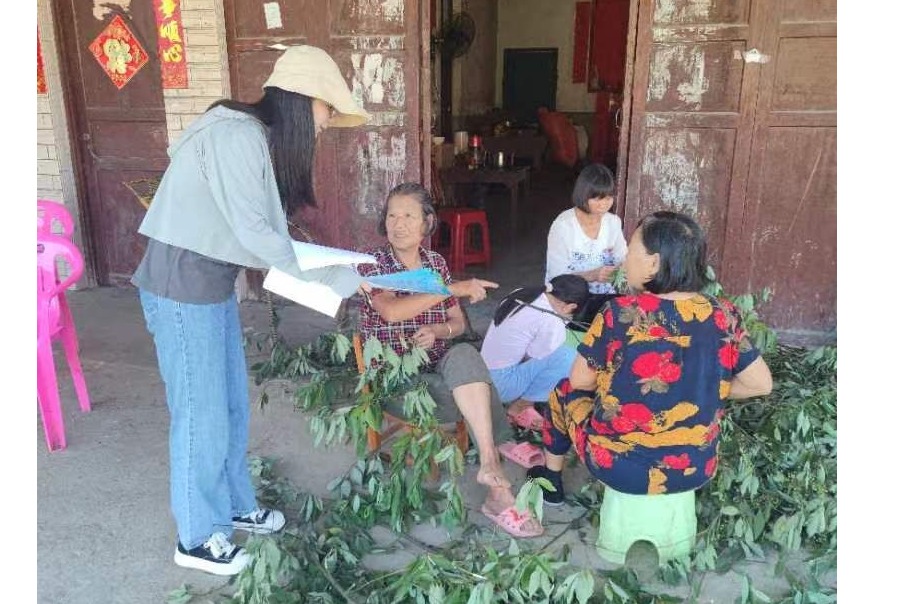 “违规改造和不合理的使用是造成房屋安全事故的最主要因素。大家要牢牢掌握房屋检测的“五步排除法”,可以自主快速自查房屋的安全隐患……”XK星空博士专业实践团成员蔡静向新宁县坪山村村民详细科普房屋安全检测的常用方式。