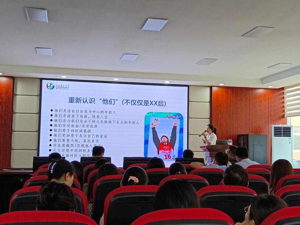 随后,易敏老师重点从“00后大学生特点和面对的压力问题”“良好沟通的助长条件”“特殊群体学生的识别和沟通技巧”方面,详细讲解了当代大学生的特点和面对的现实压力源、与学生“非暴力沟通”的方式和技巧,鼓励老师们要在与学生的沟通中多共情、倾听并尝试帮助学生“探索”,引导遇到困难的学生探寻积极生活所拥有的资源。最后,易敏老师带领老师们一起学习了抑郁症的九条判别标准以及与心理危机学生的沟通方式,帮助老师们正确认识心理危机,提升心理危机学生识别和沟通能力。