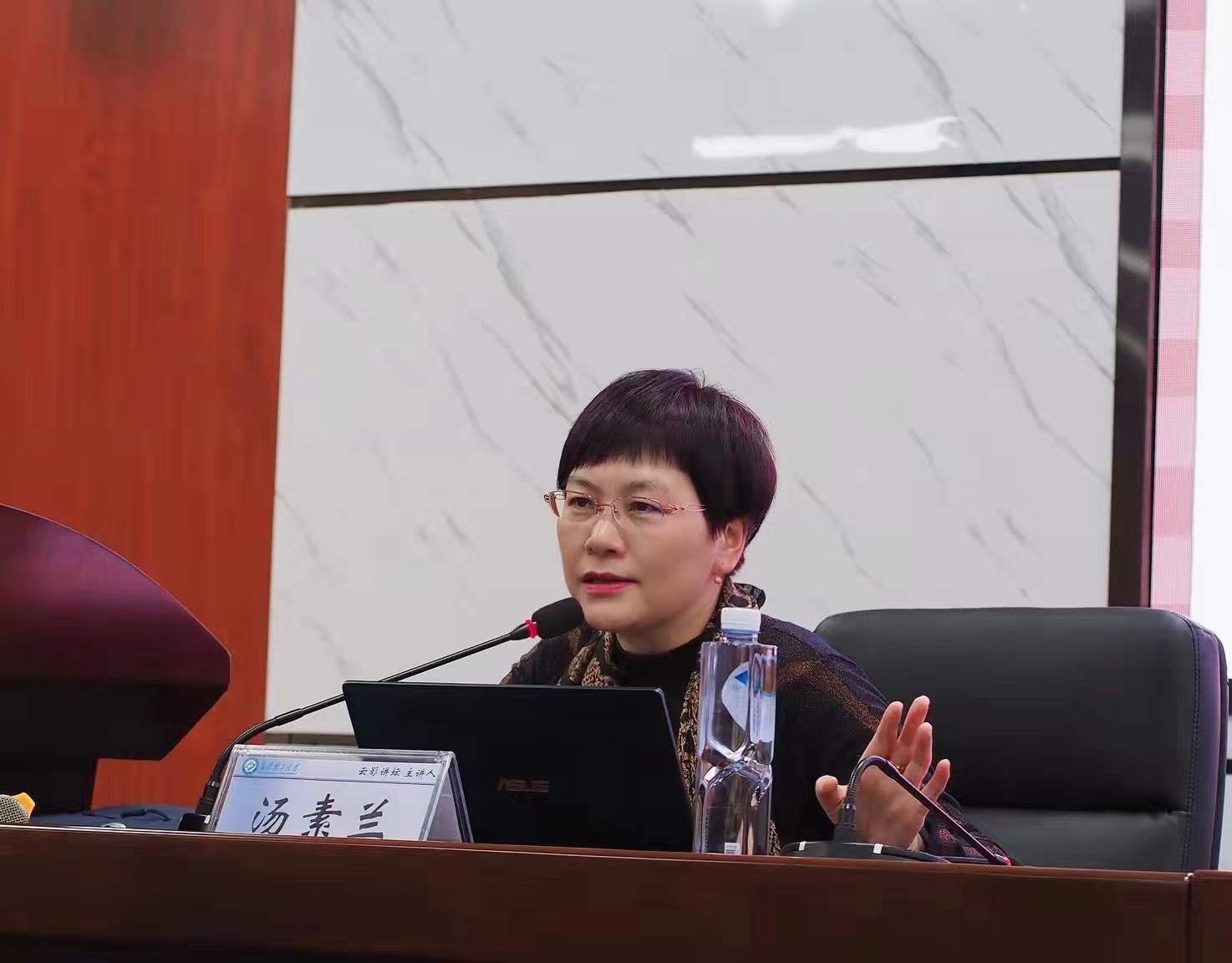 话音刚落,现场响起雷鸣般掌声,同学们争先恐后向汤素兰求经取宝。汤素兰耐心地倾听同学的提问,对不同人生阶段书籍的选择、文学鉴赏与文学研究的关系、不同阶段文学审美等一系列问题给了同学们建设性的回答。掌声在会场不停响起,讲座结束后,同学们还久久不愿离去,纷纷拿出珍藏已久的书本询问汤教授签名。