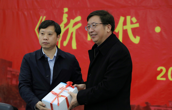 赠书仪式上,中宣部理论局副局长赵勇富、研究处副处长候军,人民出版社纪委书记王彤发表了讲话,介绍了撰写出版情况,提出了希望要求。赵勇富指出,《新时代面对面》作为“理论热点面对面”系列丛书的最新读本,主题鲜明,内容针对性强,该书以习近平新时代中国特色社会主义思想为指导,关注的问题紧密联系新时代中国特色社会主义生动实践,紧密联系干部群众思想实际,观点权威准确,语言通俗易懂,文风清新简洁,文字、图片、音频呈现出立体结构,使读本既增加了可读性,也体现了时代性,充满了凝聚社会共识、提升理论自信的智慧。他希望学校把读本的学习向深入推进,全面准确理解党的十九大精神,切实把思想和行动统一到党中央决策部署上来。