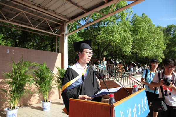 毕业生代表交通运输工程学院杨倪坤表示将坚定“四个自信”,践行“八字箴言”,脚踏实地、不辱使命,传承和续写好“博学力行守正拓新”校训和“铺路石精神”,争做新时代的奋斗者。