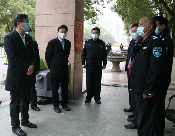 3月18日上午,校党委书记付宏渊、副书记邹宏如、党委委员齐路良与疫情防控办公室成员一行来到金盆岭校区,检查疫情防控工作并看望慰问疫情防控一线干部职工。