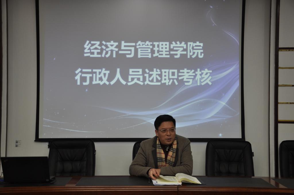 1月4日上午,经管学院开展机关行政人员年终述职考核工作。学院党政全体领导出席,全体行政人员参加了此次述职。