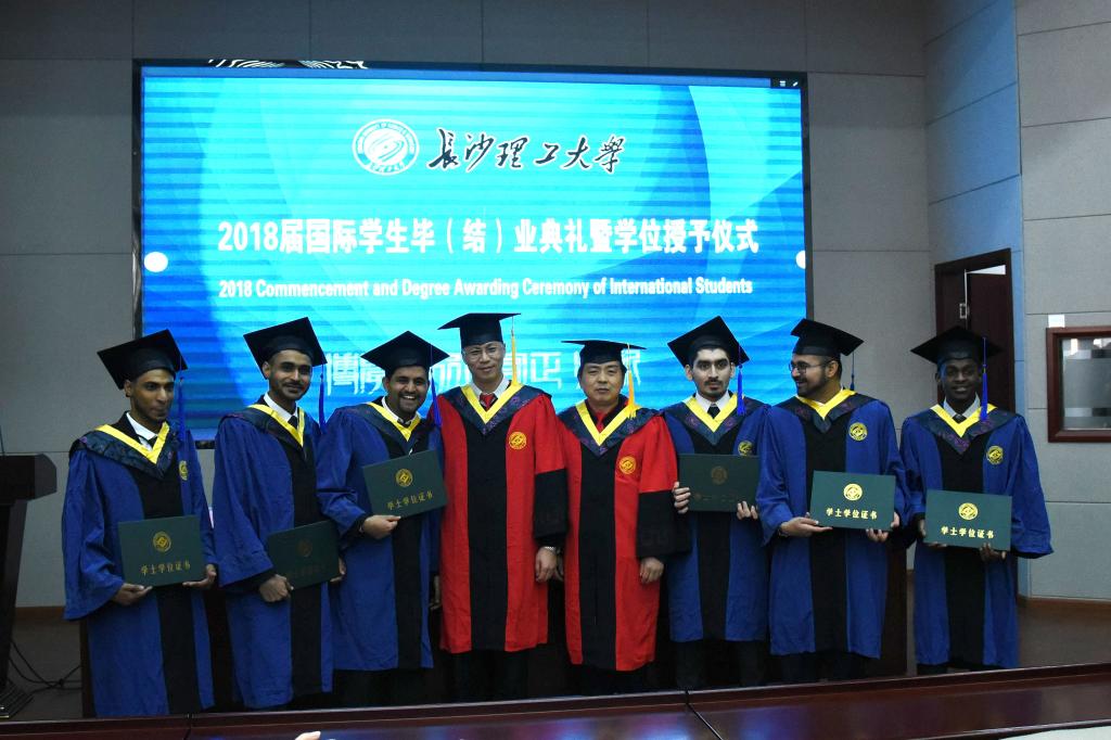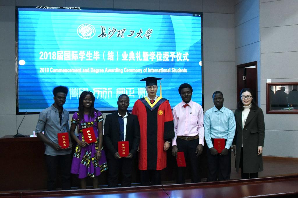 1月10日下午,XK星空2018届国际学生毕(结)业典礼暨学位授予仪式在工二B301举行。副校长蒋昌波,校党委委员、国际学院党委书记付嫦娥、土木与建筑学院副院长王桂尧、国际学院党委副书记兼副院长吴振华、副院长秦卫星,11名2018届国际学生毕业生及结业生以及国际学院全体老师和留学生参加了典礼。典礼由国际学院院长陈瑜主持。
