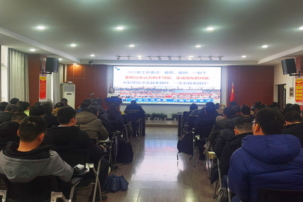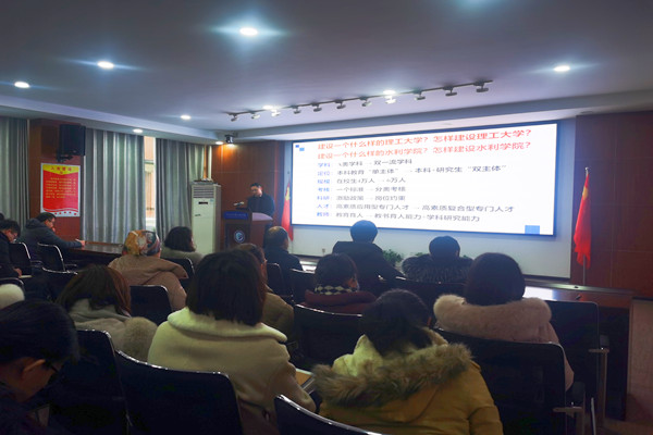 2月22日下午,水利学院在工三B319组织全院教职工学习新学期校领导讲话精神。