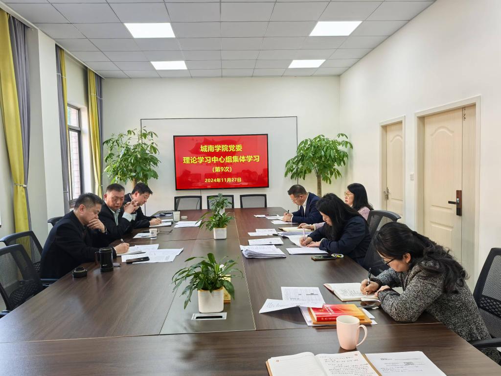 11月27日下午,城南学院党委理论学习中心组在金盆岭2教党员活动室开展《深入学习贯彻党的二十届三中全会及全国教育大会精神,推动城南学院改革与高质量发展》专题学习,校党委委员、副校长谈传生到会指导,院党委书记施一满主持,院班子成员参加学习。