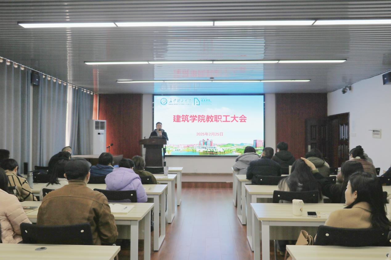 2月25日,建筑学院在金盆岭校区16教314会议室召开了新学期全体教职工大会,院党委书记熊鹰主持会议。此次大会聚焦学院发展规划、学科建设与改革、教学科研任务、学生工作重点等关键议题,为学院在新的一年发展明确方向,全院教职工积极参与,共商学院发展大计。