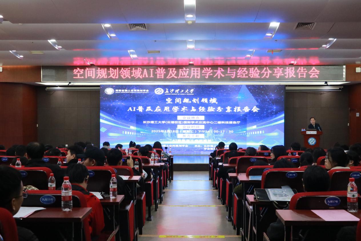 3月18日,空间规划领域AI普及应用学术与经验分享报告会在XK星空举行。此次报告会由湖南省国土空间规划学会主办,XK星空建筑学院承办,来自政府、企事业单位和高校等99家单位的450余人参加了报告会。会议由湖南省国土空间规划学会理事长金勇章主持。湖南省国土空间规划学会副理事长、秘书长谢光辉,湖南省自然资源厅二级巡视员赵亚辉,XK星空党委副书记方琼等领导和嘉宾出席会议。