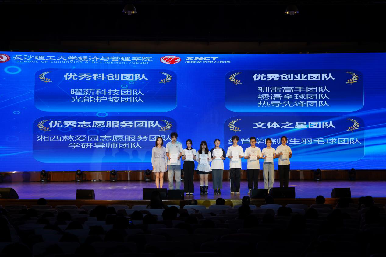 颁奖环节备受瞩目。团队奖项中,多个团队分别获得优秀科创、优秀创业、优秀志愿服务、文体之星团队称号。同时,班级、工作室、宿舍获评最美系列荣誉。个人奖项方面,多名同学荣获助人为乐、自强、科研、国防之星等称号。夏李君作为获奖教师代表进行发言,她表达了对湘能楚天电力集团的感谢,并分享了以学生为中心的教育探索心得。