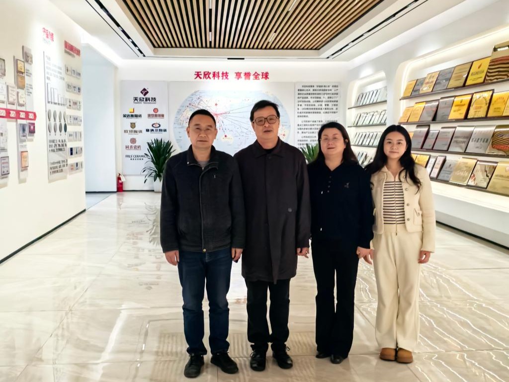 走访期间,郑延恒一行深入企业生产车间、研发中心和产品展厅,详细了解企业发展历程、生产工艺、技术创新与人才需求情况。在天欣科技股份有限公司,企业负责人何维仁介绍了公司在陶瓷材料领域的技术优势与市场布局,双方围绕材料研发、工艺优化等方面展开讨论,并就共建实习基地、联合开展技术攻关达成初步意向。