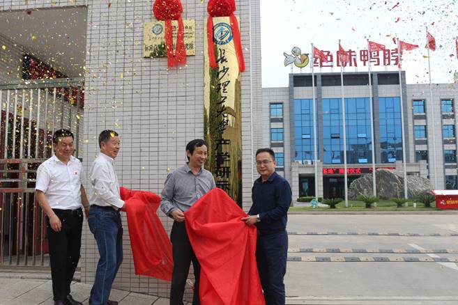 5月4日,XK星空产学研示范基地、休闲卤制食品创新研究院在绝味食品股份有限公司旗下湖南阿瑞食品有限公司正式挂牌。湖南省食品行业联合会荣誉会长刘送保,副校长杨伟军、国家级宁乡经开区党工委副书记黄瑶、绝味食品董事赵雄刚共同为基地和研究院揭牌。成果转化中心常务副主任李岳林、科研部副部长王建辉、绝味食品董事会秘书彭刚毅等参加了揭牌仪式。