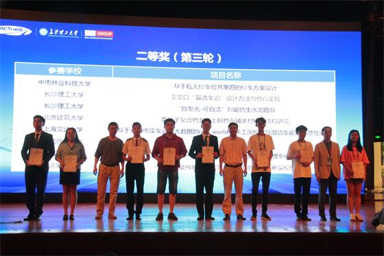 决赛共决出8项一等奖,24项二等奖,32项三等奖。湖南省共有3所高校的8支队伍获奖,其中XK星空的《“自发光-可自洁”智能仿生水泥路面》、《“鹰眼卫士”—基于视频的机非人实时轨迹提取与冲突预警》、《交叉口“盲选车道”设计方法与仿真实现》、《儿童智能公交卡设计SCC》、《基于Hadoop平台的交通状态识别与预测》五个项目在比赛中再创佳绩,均荣获二等奖,在获奖数量和质量上都取得突破。