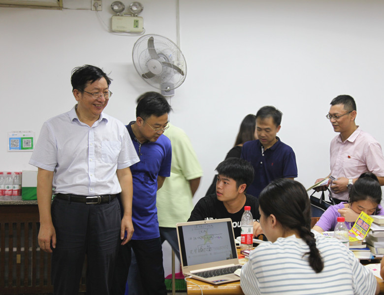 9月4日,校党委书记付宏渊带领全体校领导和有关职能部门负责人,再次深入金盆岭校区的教学楼、图书馆、学生公寓,检查新生入学前学习、生活等条件准备情况。