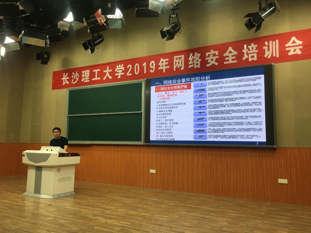 然后,中国信息安全测评中心华中测评中心网络安全专家邹勇作了网络信息安全专题培训讲座。邹勇结合校园网络安全和大量案例,对网络安全事件攻防分析、信息系统安全等级保护工作两大主题进行了深入阐述。他介绍了造成网络安全的常见行为是:私自外联建站、僵尸网站(系统)无人管理、互联网边界防火墙安全配置不当、只看业务不管安全、不良上网行为带来病毒木马、漏洞不检测和拒不修复、敏感信息数据泄露等;他从技术上强调,单位和个人都要养成业务系统上线安全测试、文明上网、定期补丁更新、定期查杀病毒木马、保护敏感信息和数据等良好的网络安全习惯。从《网络安全法》和国家信息系统安全等级保护标准的角度,他对学校应当做好、如何做好信息系统安全等级保护工作进行了详细介绍和指导。