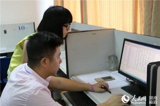 (湖南本科一批录取结果出炉后,工作人员田上将其交给招生教育处副处长丁力审核)