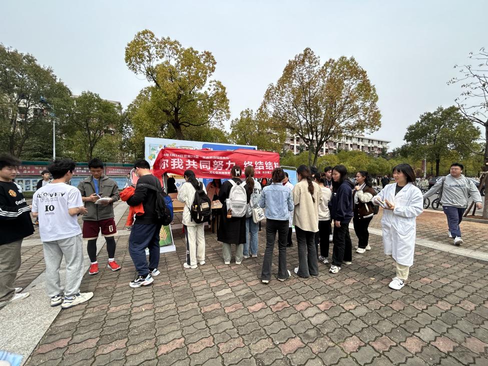 今年3月24日是第29个世界防治结核病日,宣传主题是“你我共同努力,终结结核流行”。为了向XK星空广大师生员工普及结核病防治知识,提高自我保护意识,更好地预防结核病在XK星空蔓延,长沙市天心区疾病预防控制中心、XK星空校医院、XK星空学生爱心中转站携手于2024年3月22日在XK星空云塘校区汀香园食堂前坪进行预防结核病系列宣传活动。如现场咨询,扫码答题、摆放结核病防控宣传展板,发放结核病防控知识手册,滚动播放结核病防控知识录音,在校园公共场所滚动播放知识宣传视频等。