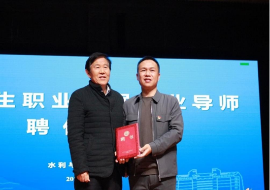 报告会后,校关工委副主任王乃厚为庄稼颁发大学生职业发展企业导师聘书。