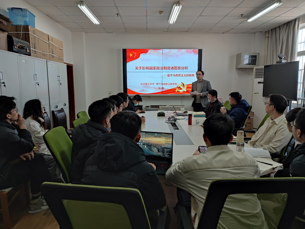 1月18日下午,一场热烈的讨论会正在电苑楼11-08实验室里展开,这是XK星空电气与信息工程学院研究生课题组组织的“关于影响国家政治制度诸因素分析”思政专题学习研讨会。研讨会由课题组负责人,电气与信息工程学院姜飞副教授主持,该院32名研究生参加了讨论。本期特别邀请湖南大学电气与信息工程学院涂春鸣教授、马克思主义学院王学明博士与学生们共同探讨、并答疑解惑,
