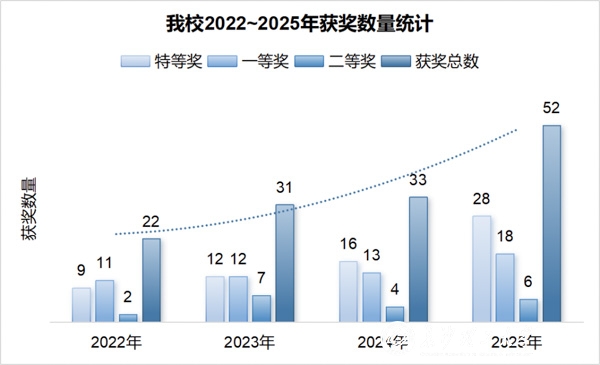 该赛事于2023年列入《全国普通高校大学生竞赛分析报告》竞赛目录,是全国大学生展示测绘科技创新的最高级别赛事,本次大赛吸引了来自全国400余所高校的7000多名学生参赛,赛事规模与影响力再创新高。大赛共设置了测绘技能竞赛、开发设计竞赛和科技论文竞赛三大赛项,总体获奖率30%,其中特等奖5%,一等奖10%,二等奖15%。据统计,XK星空参赛学生此次获奖率高达66%,部分赛项获奖率超90%,远高于赛事平均获奖率。
