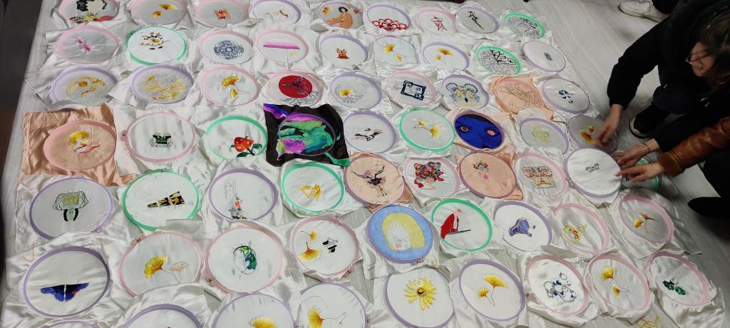经过四天理论与实践相结合的课程学习,每个同学都将自己创作的图形绣制出了一副原创的湘绣作品。由江再红大师及众多省级湘绣大师和工艺美术系老师们评选优秀作品,评选过程中,各位湘绣大师对同学们的作品创意赞不绝口,觉得看到了湘绣的新希望;专业老师们也对同学们此次实践作品的原创性与创新性有如此大的进步表示惊讶,觉得这是一次很好的实践课程方向与方法的探索。