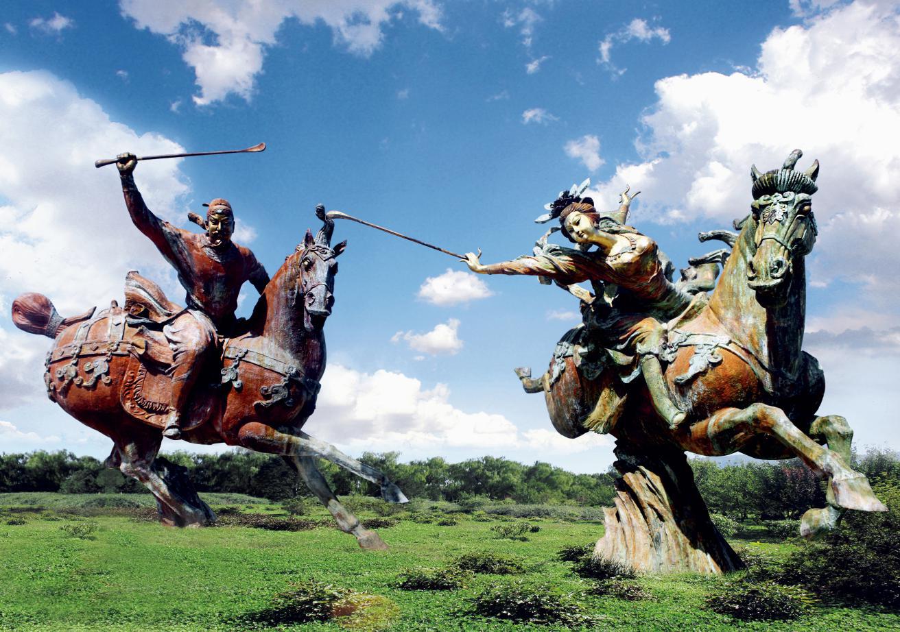 西安大明宫群雕《唐代马球图》