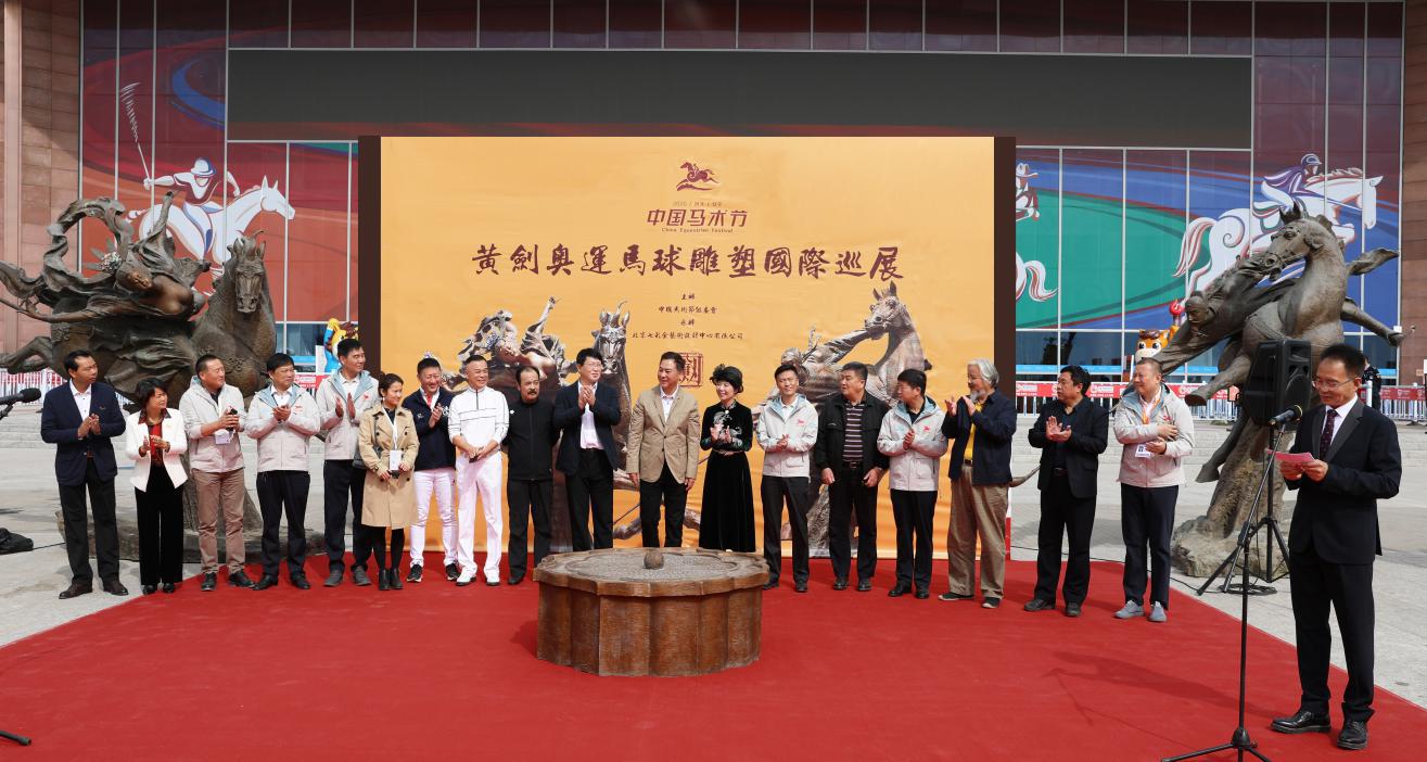 2020国庆节期间,本年度全球规模最大的马术盛会——第九届中国马术节,在中国马业名城河北安平重磅启幕,堪称中国马术爱好者的嘉年华。为增添本届马术节的文化气氛,助力中国马业名城安平的文旅发展,奥运艺术使者、著名雕塑家黄剑受中国马术节组委会邀请,策划举办了“黄剑奥运马球雕塑国际巡展”,首次集合2008年北京奥运会永久性大型群雕《明皇贵妃马球图》。