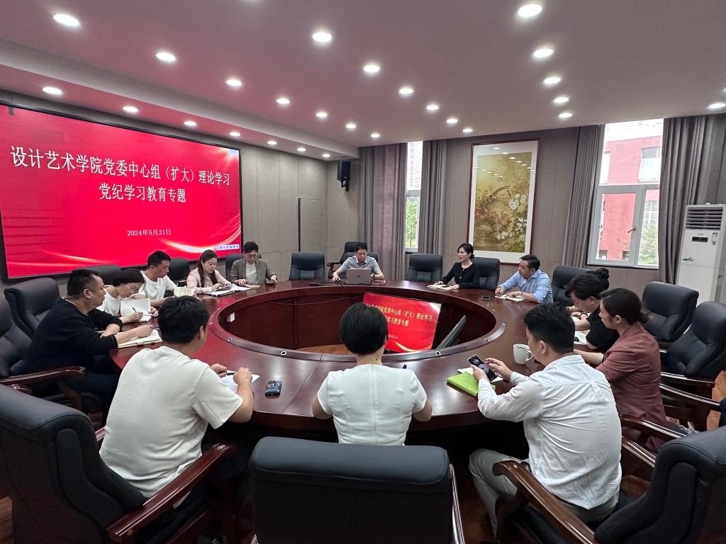 5月21日下午,设计艺术学院党委在艺术楼C320进行中心组(扩大)党纪学习教育专题学习。学校纪检监察处处长方文彬做专题报告,学院党政领导班子成员、党支部书记和系部主任参会,会议由党委书记郭剑主持。