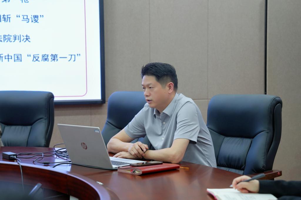 郭剑在总结讲话中表示,学院全体党员要深入学习领会习近平总书记关于党的自我革命的重要思想和党的纪律建设的重要论述,牢固树立党章党规党纪意识,推动学院全面从严治党向纵深发展。郭剑强调,当前学院正处在爬坡过坎的关键时期,要更加注重党的纪律学习,党员干部要立标杆,做表率,学用结合,知行合一,做到学在平常,做在日常,抓在经常,以严明的政治纪律和组织纪律为我们的工作保驾护航,推进学院高质量发展。