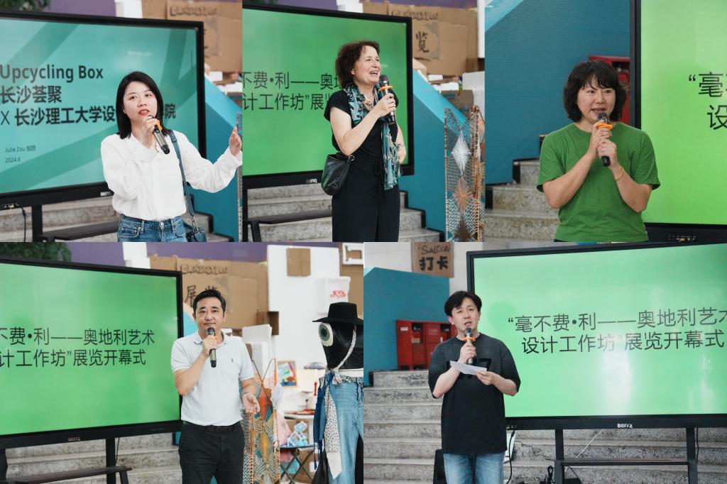 开幕式由设计艺术学院副院长王龙主持,XK星空对外合作与交流处处长甘海鹰作为特邀嘉宾出席。此外,设计艺术学院院长王健、知名奥地利设计艺术家Jasmine,以及长沙荟聚公共事务与可持续发展部负责人邹丽亦发表了精彩演讲。