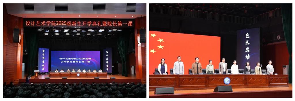 9月22日晚上设计艺术学院2025级新生开学典礼暨院长第一课在云塘大会堂举行,学院院长王健、学院党委书记郭剑、学院党委副书记兼副院长宋国宁、学院副院长王龙、学院副院长李娟娟、学院副院长蔡花菲、学院党委委员龙海、学院党委委员严海岸、学院党委委员朱诗源、出席本次典礼,新生班主任全体辅导员及2025级450名新生参加。