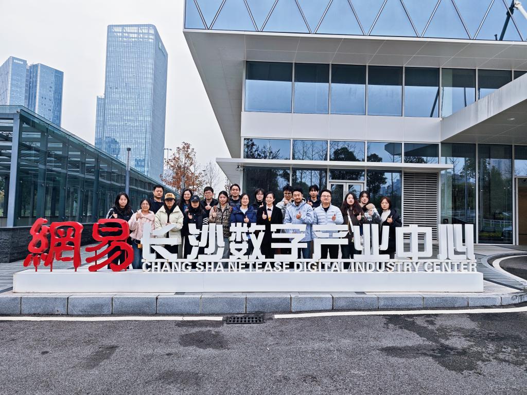 下午,团队先后走进马栏山视频文创园与网易(长沙)数字产业中心。管委会副主任刘飞、行政审批服务局局长陈铭、副局长罗欣灿等接待来访,团队参观科文融合展厅,沉浸式感受数字文创产业活力。双方就共建实习基地、联合项目研发、专场招聘等达成初步意向。在网易(长沙)数字产业中心,一行人考察了企业运营场景与实训基地,各教研室主任结合专业特点与企业探讨课程优化方向,毕业生代表现场沟通求职需求,为后续合作奠定基础。