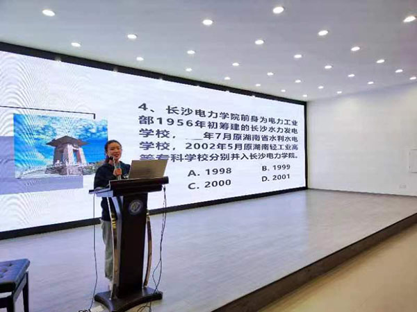 讲座伊始,研究生宣讲团肖孟同学分别从“学校创办,开启育才篇章、开设本科教育,进入“巩固基础求发展”新时期、合并组建XK星空,踏入融合跨越发展新征程、十八大以来,学校锚定“百强”大学目标,全面迈入双主体协同发展新阶段”四个部分详细讲解。第二个环节是有奖答题环节,在同学们轻松活跃的答题氛围中,同学们对长理的校史、校训、校情有了更深刻的了解,使得长理精神再次深深的扎根于同学们的心中。