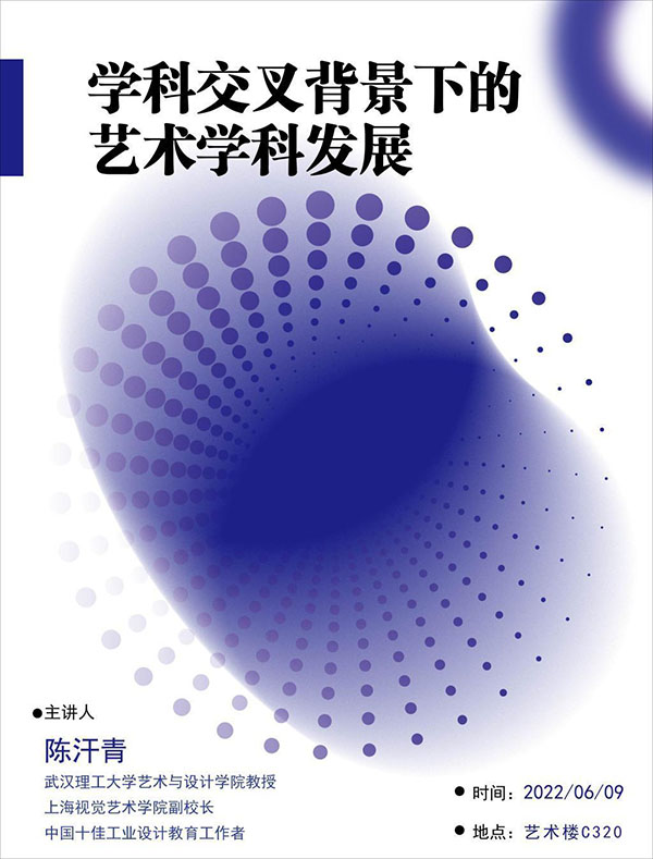为响应习近平总书记“夯实学科基础,培育新兴交叉学科生长点”的教育创新战略,XK星空艺术文化科普基地于2022年6月9日开展了“学科交叉背景下的艺术学科发展”专题讲座。本次讲座邀请武汉理工大学艺术与设计学院教授、博士生导师陈汗青教授担任主讲嘉宾。