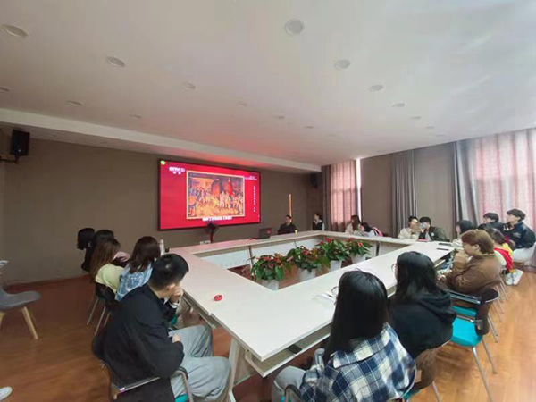 中央电视台百集特别节目《美术经典中的党史》从中国共产党成立以来各个历史时期,遴选出100件最具代表性的作品,再现中国共产党成立100年来波澜壮阔的光辉历程。特邀党史和美术专家讲述美术作品背后的党史故事。4月15日中午12:00,设计艺术学院把党史学习教育与学生专业学习相融合于建筑艺术楼C320举行“跟着博士艺起学《美术经典中的党史》”分享交流活动。赵骞远博士受邀参加,此次活动由党建辅导员傅冰主持,2018级学生党员参与。