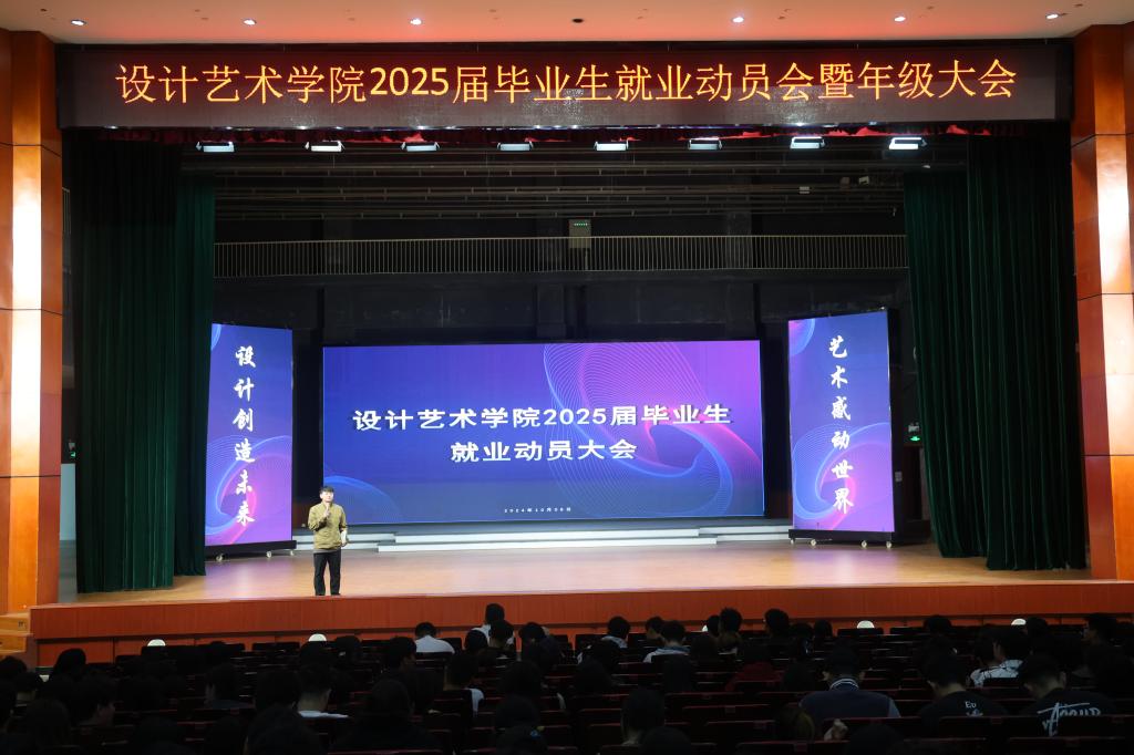 10月8日下午,设计艺术学院于大会堂成功举办了2025届毕业生就业动员大会暨年级大会。本次会议由年级辅导员李世成主持,学院就业专干程静征、心理辅导员李慧参加。
