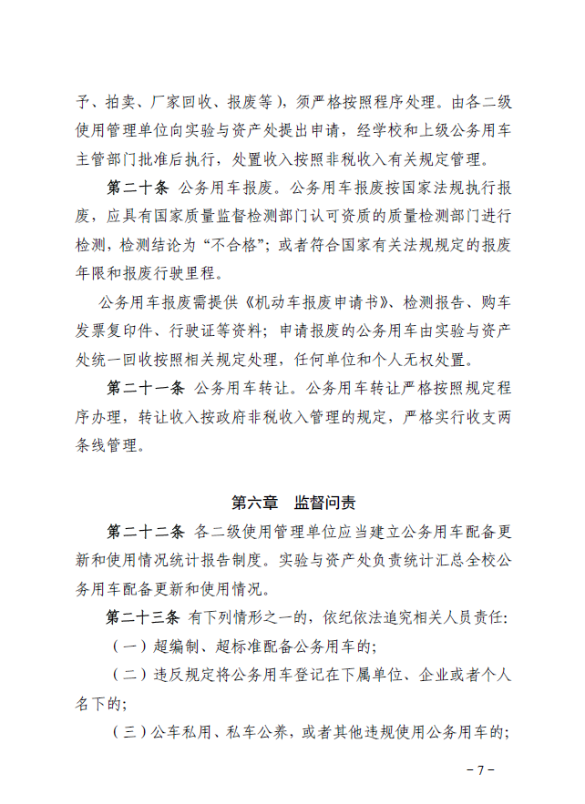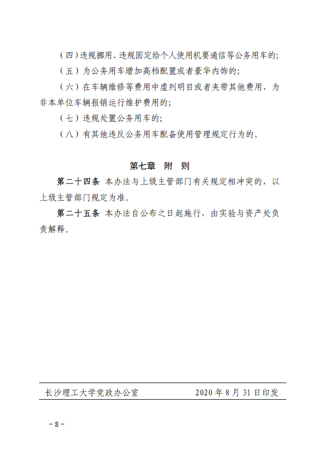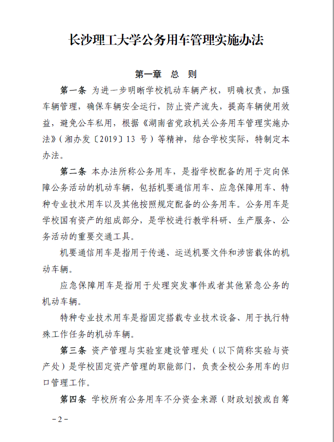 关于印发修订后的《XK星空公务用车管理实施办法》的通知(长理工大资[2020]4号)
