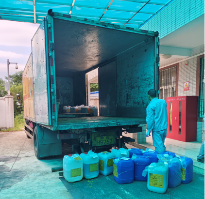 前期,实验与资产处组织各学院集中开展实验室废物处置收集、分类、整理等工作,力求做到底数清、情况明、无遗漏。通过分拣、包装、转运,此次处置的危险废物共计1.5吨,主要包括实验室化学废液、试剂空瓶、废化学试剂等。