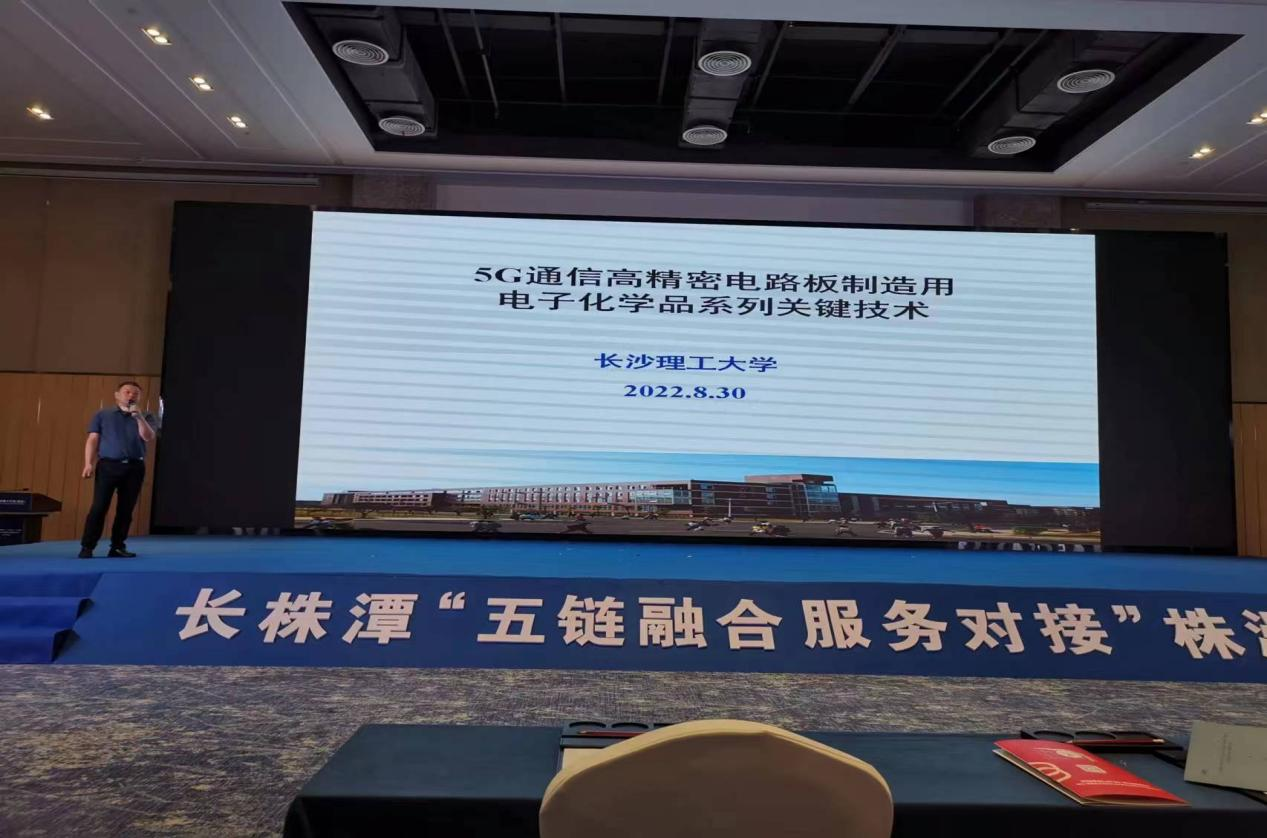 8月30日上午,XK星空科技成果转移转化中心(知识产权中心)副主任刘亚辉陪同化学化工学院吴道新、肖忠良两位教授到株洲市中国动力谷学术交流中心参加长株潭三市“创新链、产业链、资金链、人才链、政策链五链融合”科技成果对接活动。在对接活动会上,吴道新教授以“5G通信高精密电路板制造用电子化学品系列关键技术”为题作项目路演,该项技术得到了相关企业和投资方的广泛关注,路演结束后,有企业和投资方主动找到吴教授了解该技术的具体情况和留下联系方式。