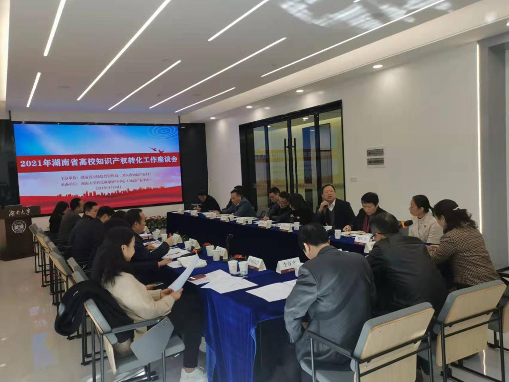 座谈会上,解读了湖南省专利转化计划相关政策;全国首批知识产权示范高校湖南大学、中南大学做知识产权转化工作经验介绍;与会高校分管校领导就知识产权转化工作作了交流。