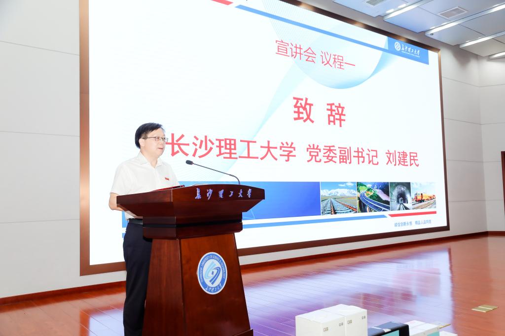 张瑞全代表中国铁建致辞。他对学校长期以来给予中国铁建的大力支持表示感谢,对扎根铁建的长理校友给予充分肯定。他向长理学子发出诚挚邀请,期待更多的长沙理学子加入中国铁建,携手奋进在新时代,共筑中国铁建新的辉煌,为国家基础设施建设事业做出更大的贡献。