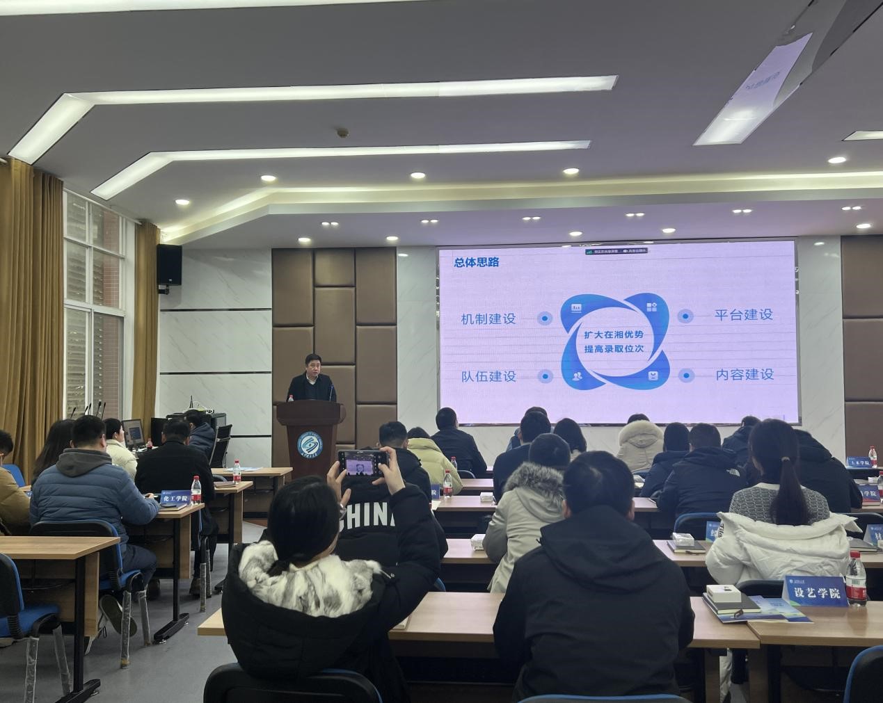 招生就业处副处长田上做主题发言,他从构建宣传工作体系、完善宣传工作布局、提高咨询服务质量和优化招生宣传内容等方面对2023年招生宣传工作进行了认真总结,并提出从机制建设、平台建设、队伍建设、内容建设等四个方面发力,全面提升招生宣传工作质量和效能的总体设想。