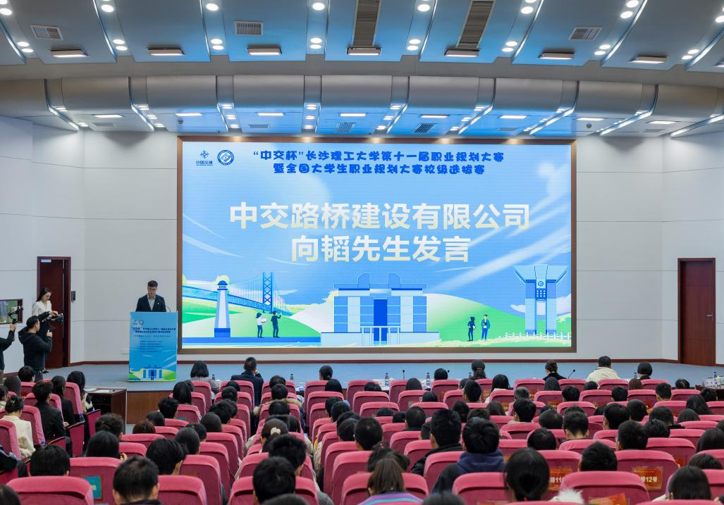 中交路桥建设有限公司向韬先生代表协办单位发言。他表示大学生应该要在实践中不断提升自己的职业能力和专业素养,树立正确的择业观、找到适合自己的职业发展方向。XK星空向中交集团输送了许多优秀人才,期待未来有更多优秀的长理学子在中交集团实现人生价值。