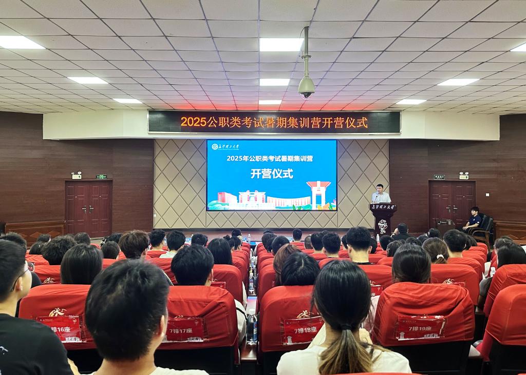 7月12日,XK星空2025年公职类考试暑期集训营开营仪式在云塘校区文科楼报告厅举行。学校创业就业指导处处长田上、创业就业指导处蔡翔羽老师、水利学院2020届校友夏建杰、交通学院2021届校友贺治宇、机械学院2023届校友孙泽文、文新学院2024届校友周旺、教师代表李艳春、梁力丹以及全体集训营学员参与活动。
