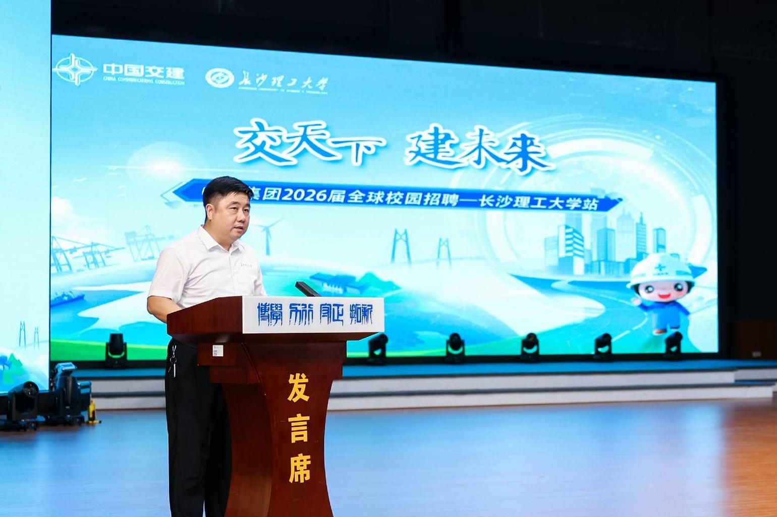 9月15日,由中国交通建设集团有限公司主办,长沙理工大学承办的中交集团2026届毕业生校园招聘专场宣讲会和招聘会在云塘校区举行。校党委副书记方琼出席活动。