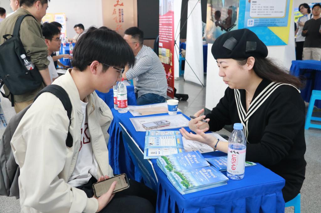 建筑学院党委书记熊鹰、常务副院长许建和、党委副书记肖义慧、全体辅导员在会场接洽用人单位,就促进高校毕业生高质量就业、企业更好引才展开深入沟通。招聘会现场气氛热烈,秩序井然。毕业生们手持精心准备的简历,积极与用人单位沟通交流,了解企业的需求和岗位信息。用人单位的工作人员也热情地向毕业生介绍公司的概况、发展前景和福利待遇等情况,并对毕业生的提问进行了耐心的解答。